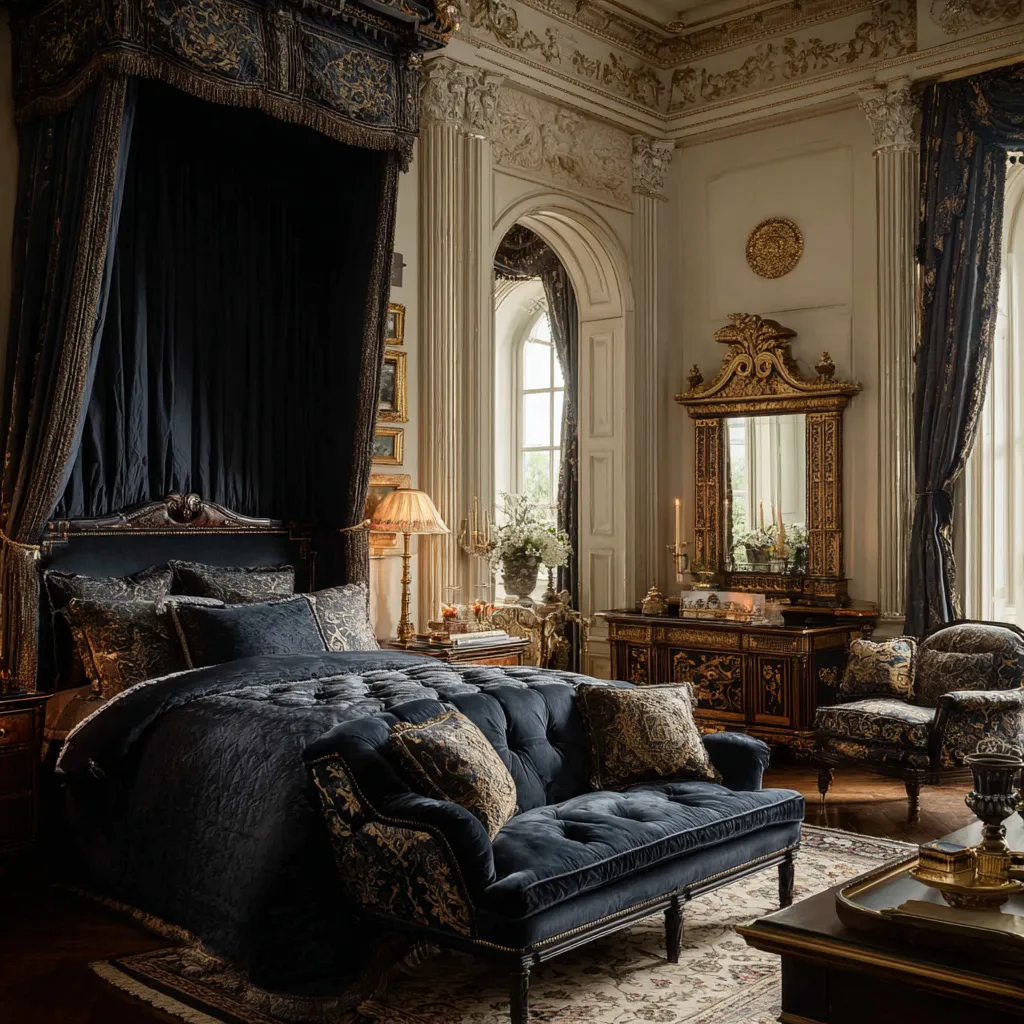 Save this for your opulent bedroom transformation! #GildedAgeBedroom#LuxuryBedroomIdeas#VintageBedroomDecor#FourPosterBed#HistoricalDecorIdeas#OpulentLiving#BedroomInspo#ElegantInteriors#HomeStyleIdeas#DreamBedroomIdeas