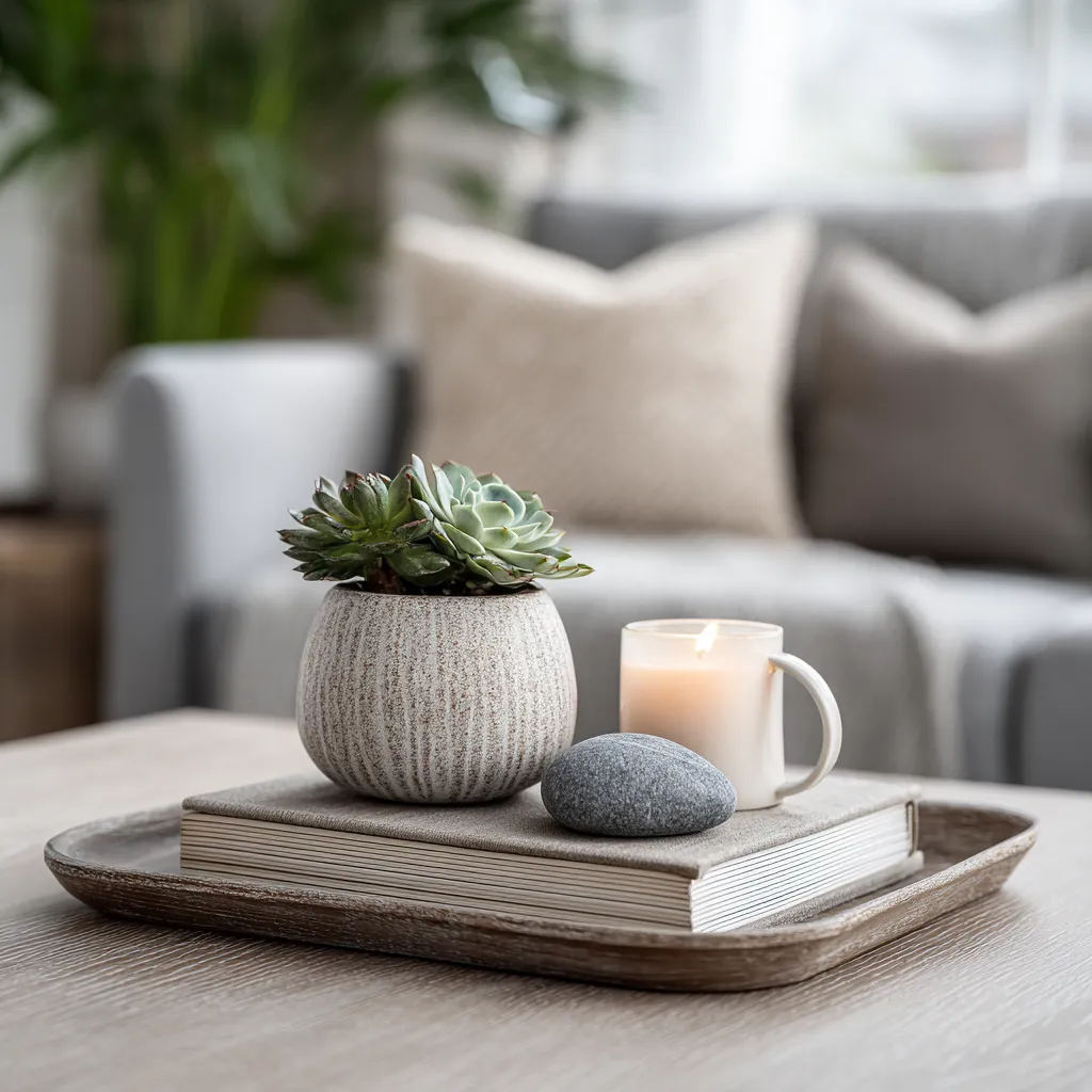 * **Start with a Tray:** A natural wood or minimalist metal tray grounds your arrangement.