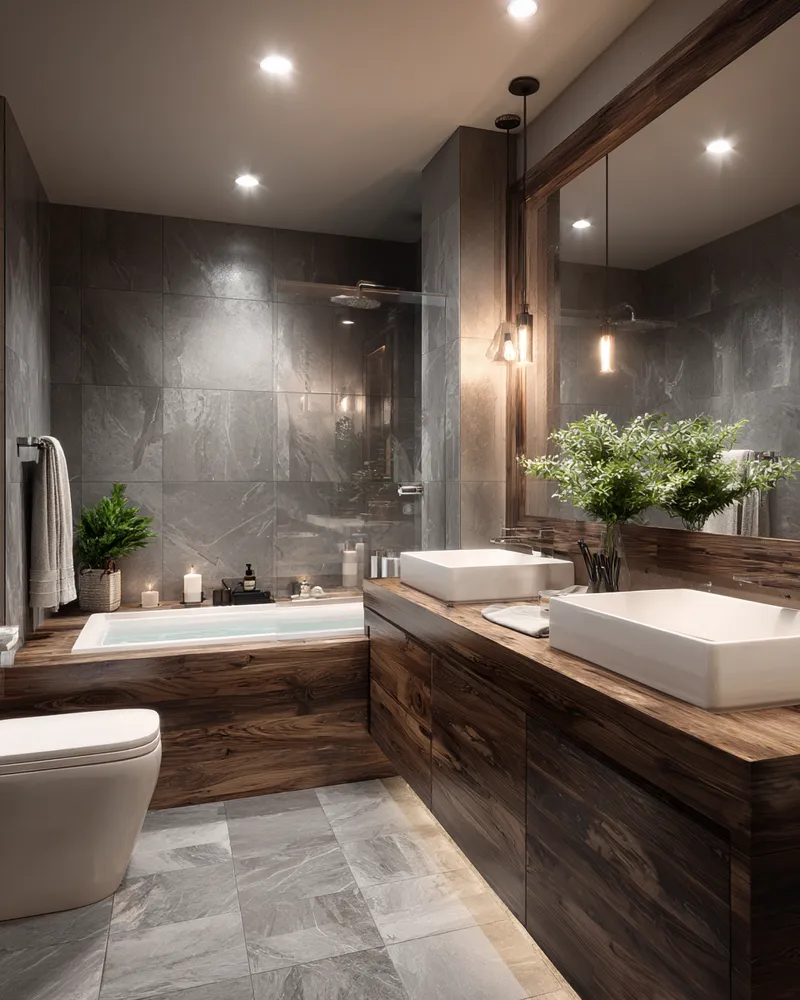 Bathroom Retreat: PNW Nature Vibes with Wood & Stone 🌲🛁