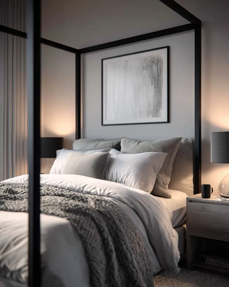 Dreamy Monochrome Bedroom: Serenity in Black, White & Grey 🤍✨