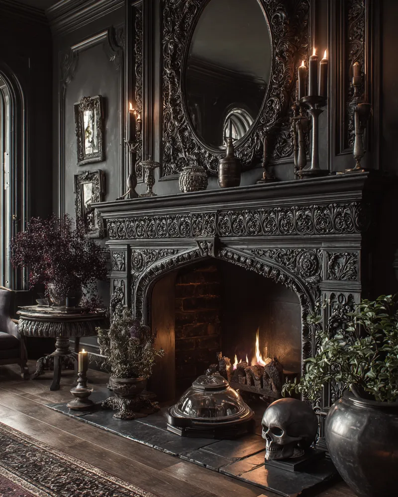 Gothic Mantels: Your Fireplace's Dramatic Makeover 🦇
