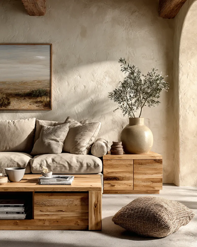 This design philosophy invites you to find calm in the natural flow of life. Think aged wood with character, hand-thrown pottery with subtle flaws, and textures that speak of time.
