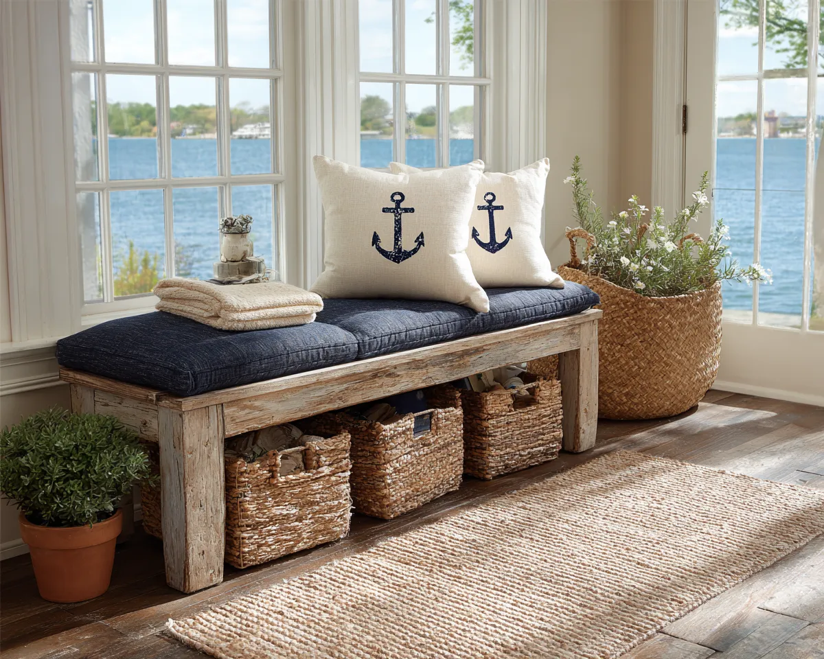 Nautical Entryway Bench Style: Seating with Seaside Soul! ⚓️👟