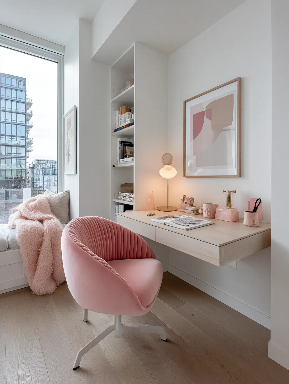 Who says home offices have to be serious? Let's bring some fun and creativity with a pop of playful pink! 💖 This cheerful color can boost mood and inspire productivity without being overwhelming.