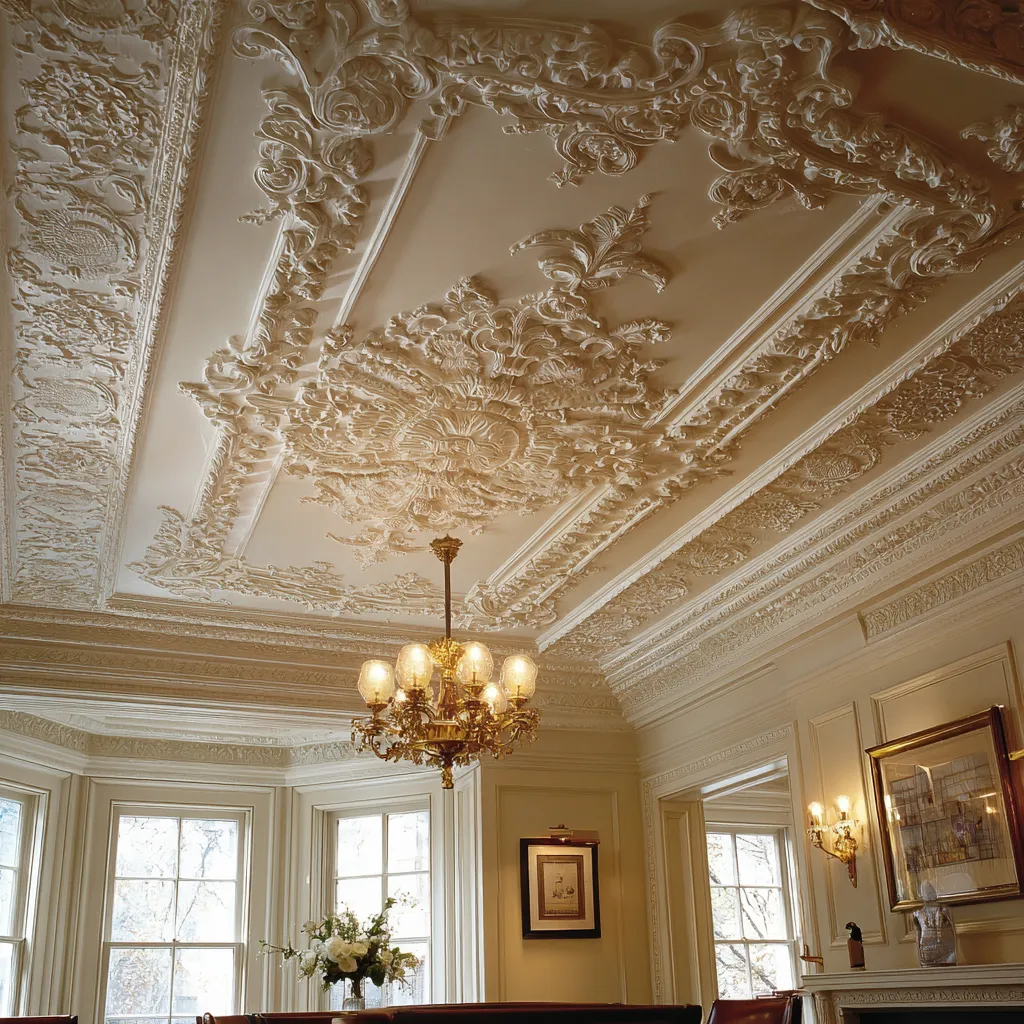 The ceilings in historical homes are often overlooked canvases, holding magnificent details. 🌟 From ornate plasterwork and detailed cornices to beautiful wooden beams, these elements deserve attention. We focus on carefully cleaning, repairing, and sometimes even subtly highlighting these architectural features. 🪵 A fresh coat of paint in a historically accurate color can revive their grandeur. Properly lit, these ceilings become breathtaking focal points, adding immense character and depth to any room. They are silent storytellers of the home's past. Save this for your ceiling inspiration! ⬆️ #HeritageCeilingIdeas#HistoricalCeilingIdeas#PlasterworkIdeas#CeilingDetailIdeas#ArchitecturalDetailIdeas#InteriorDesign#HomeDecor#HistoricHomes#CeilingDesign#DecorativeCeilings