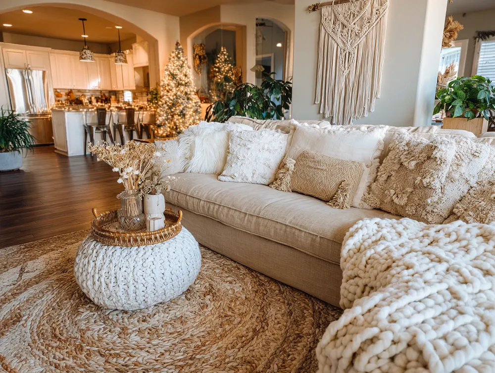 Festive Bohemian Accents for a Relaxing Holiday Living Space 🌿🌟