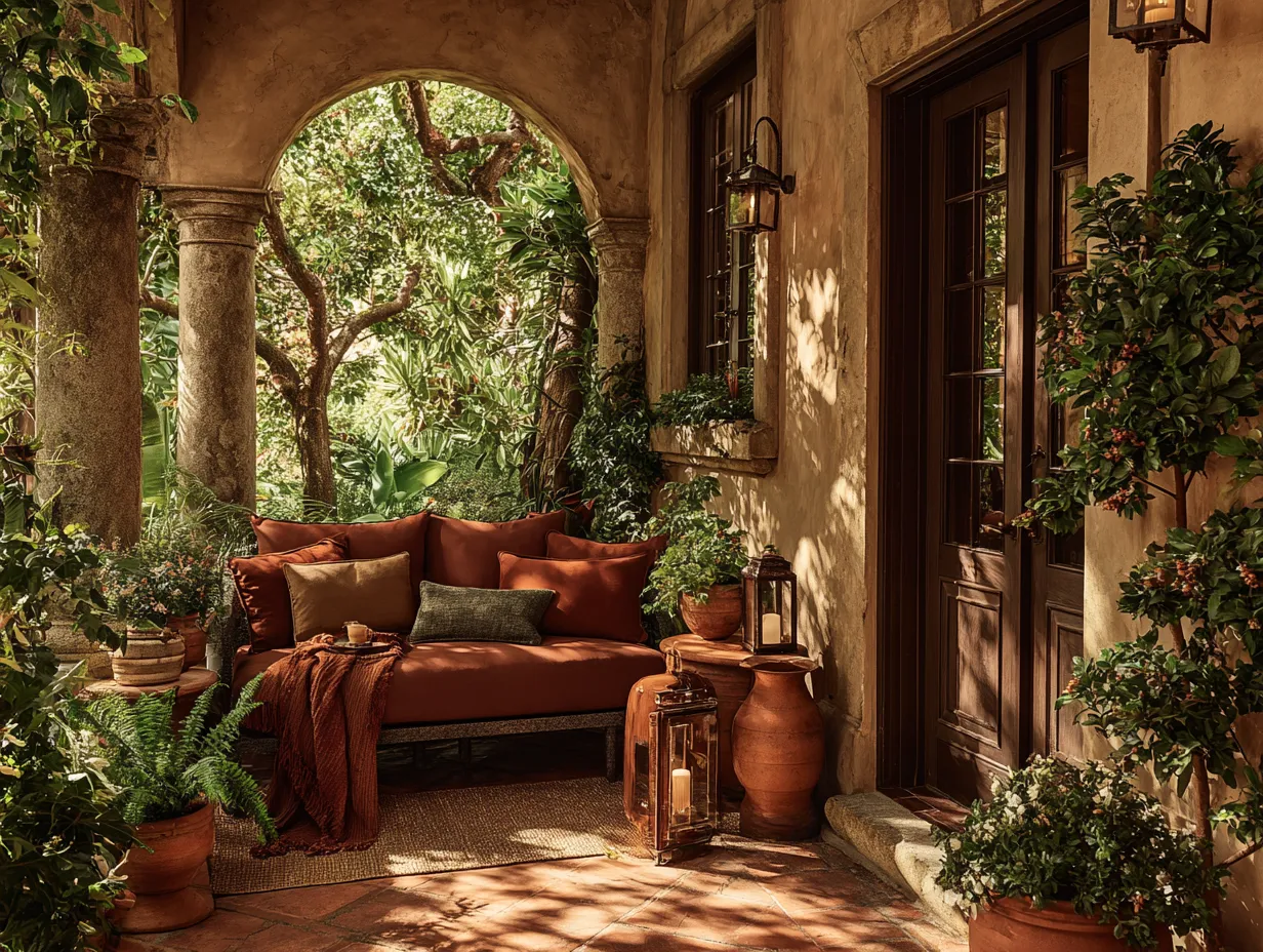 Let's create an outdoor lounge space that feels like a bohemian escape, infused with the warmth and artisanal charm of terracotta! It’s the perfect material for creating a relaxed, Mediterranean-inspired atmosphere.