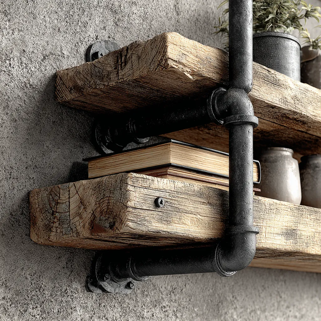 Creating your own industrial shelves is a fantastic way to add functional style! Pipe shelving is a classic – combine black iron pipes and fittings with reclaimed wood planks for a robust look. For something simpler, consider metal brackets and distressed wooden shelves. Think about wall mounting a vintage industrial cart and adding shelves to its existing frame. The beauty is in the raw materials and visible construction. It's rewarding and completely customizable to your space. 💪 Ready to get building? Save this for your next project!