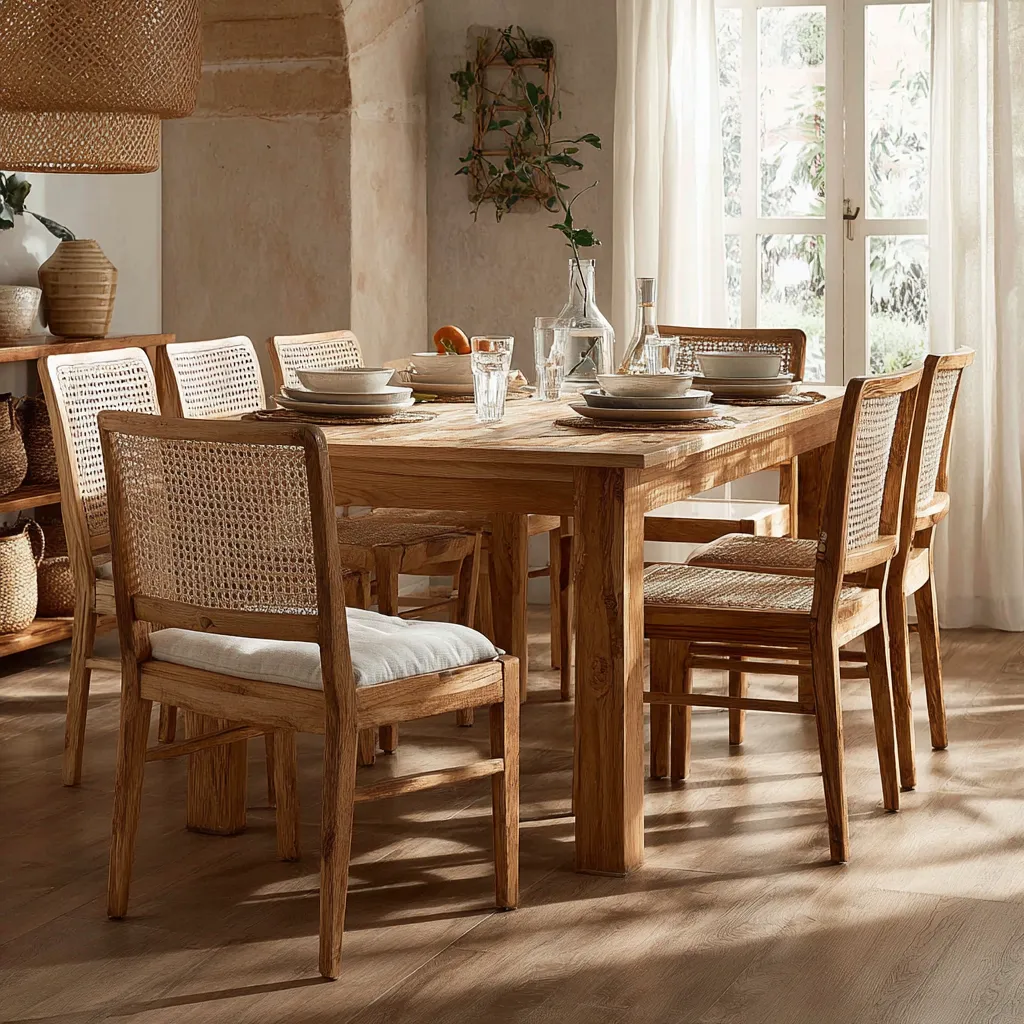Dining Delights: Woven Chairs for Natural Elegance! 🍽️