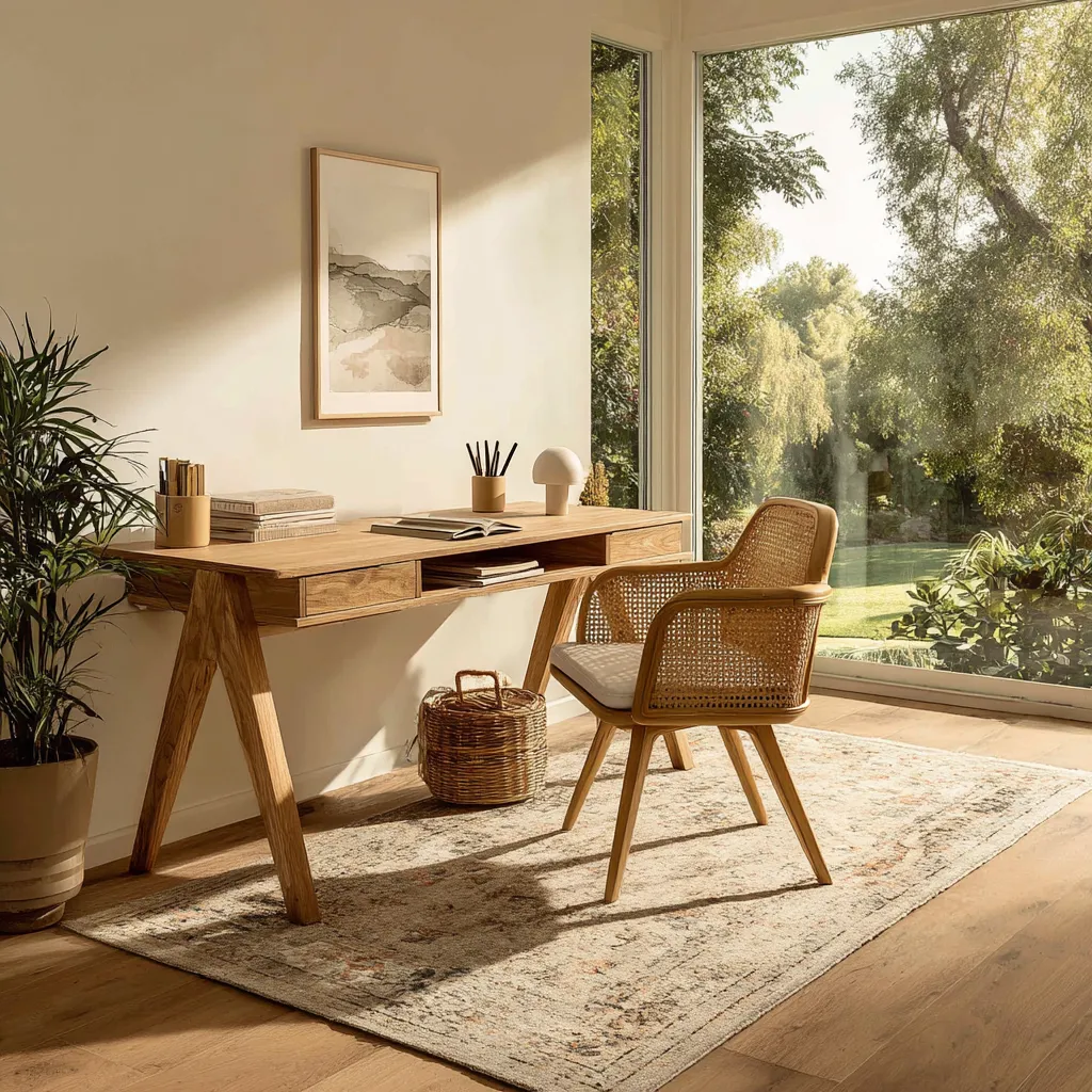 Create a productive and inspiring home office by incorporating natural woven textures. 🌿 A stylish rattan desk organizer, woven storage baskets for files, or even a subtle cane-backed chair can add warmth and reduce visual clutter. These elements bring an organic, grounding feel to your workspace, promoting focus and calm. Pair with natural wood elements and minimalist decor for a balanced, aesthetically pleasing environment that encourages creativity and concentration. It’s about blending beauty with practicality for your work-from-home haven. ✨ #HomeofficeIdeas#WovenDecorIdeas#RattanOfficeIdeas#DeskOrganizationIdeas#WorkFromHomeIdeas#InteriorStyling#NaturalOffice#ProductivitySpace#MinimalistDecor#CraftedOffice