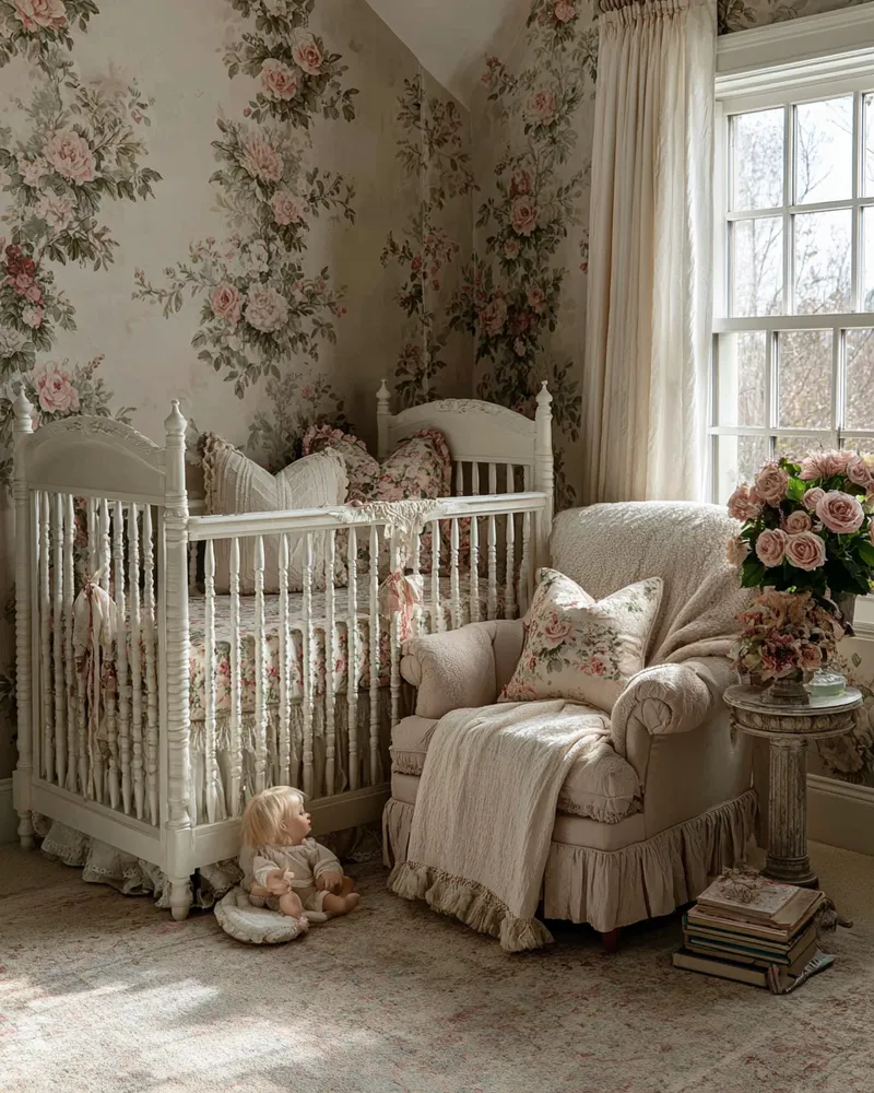 * **Charming Details:** Delicate mobile, curated artwork, and perhaps some heirloom pieces.