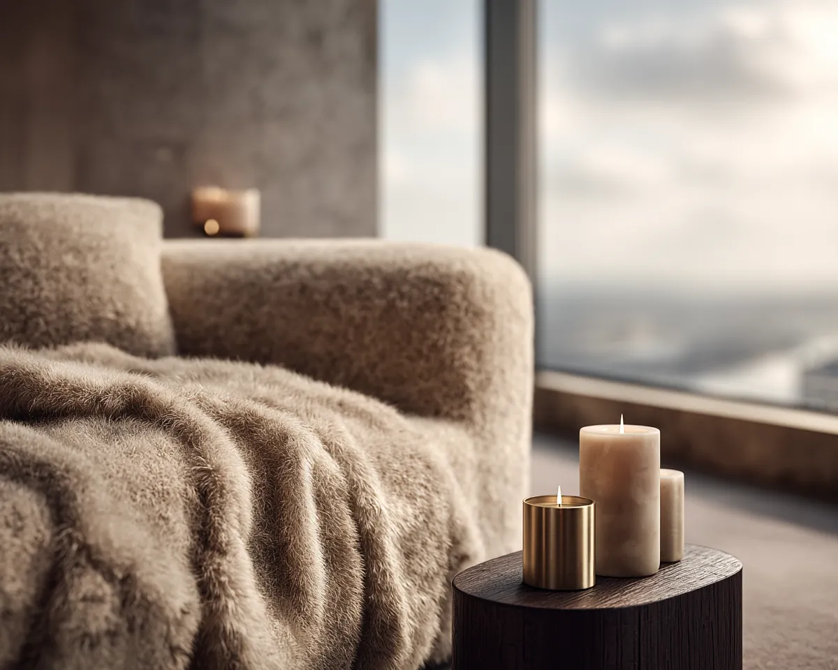 * **Textural Throws:** Introduce plush velvet or chunky knit throws in neutral tones on sofas and chairs.