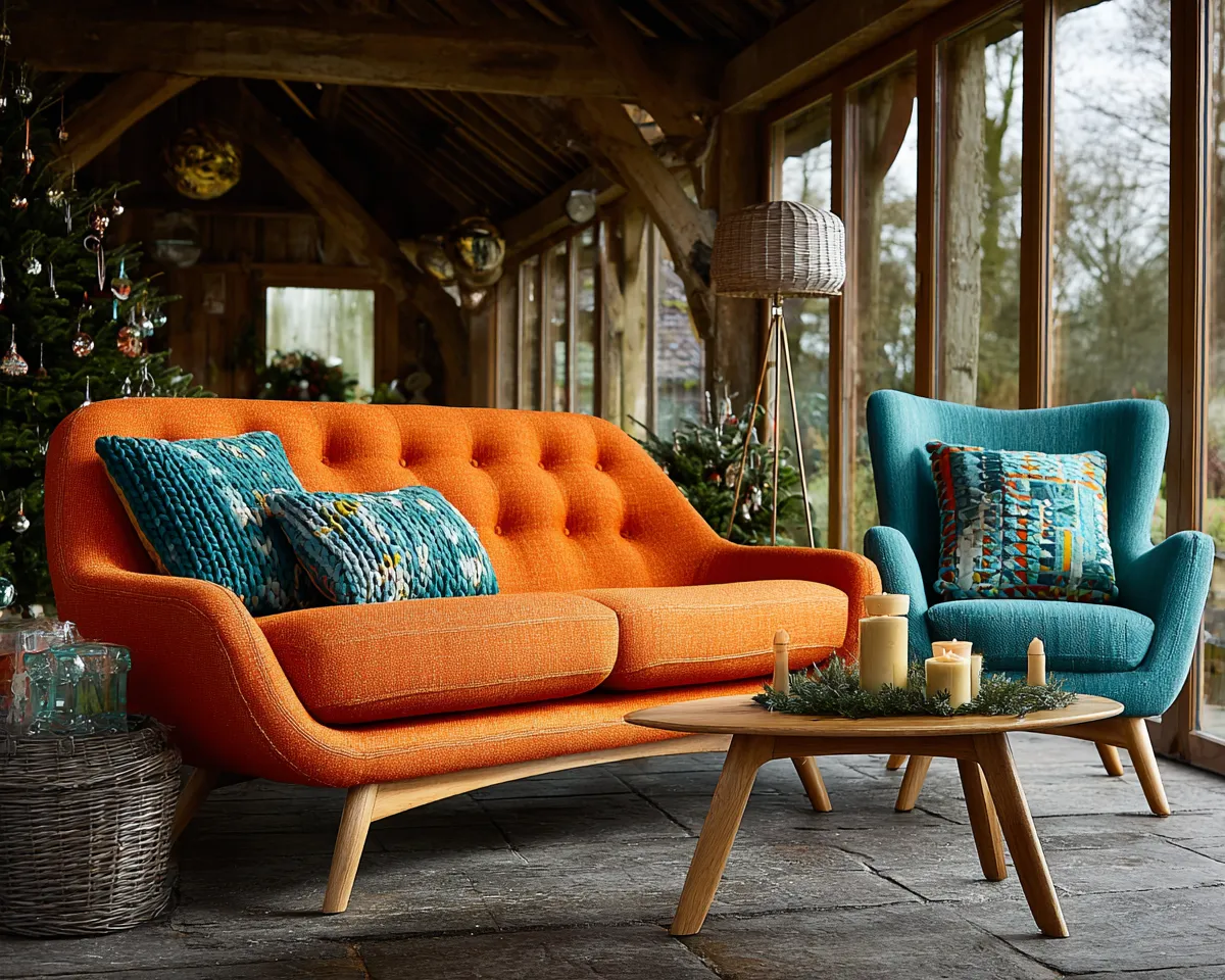 The Cozy Corner Curator: Velvet & Wood for Your Christmas Nook! 🛋️🎄