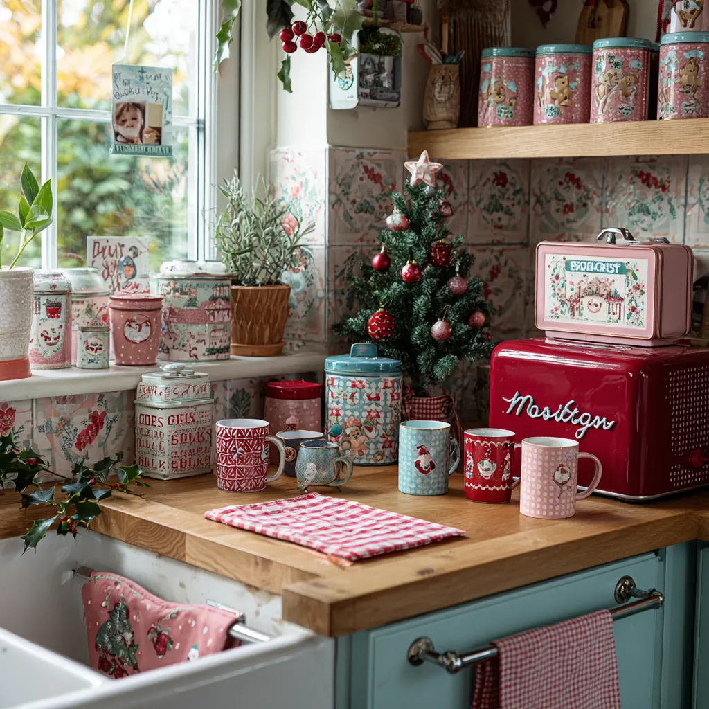 * **Knick-Knacks:** Vintage Santa mugs, kitschy cookie jars, and retro tins.