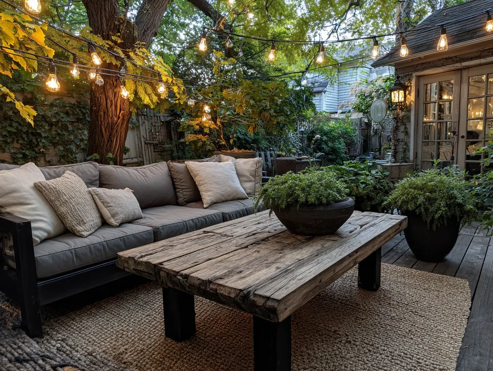 Outdoor Oasis: Industrial Farmhouse Patio Style 🪴🖤
