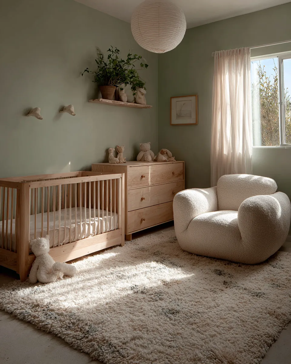 🪵 Natural Wood Furniture: Opt for a crib, dresser, and rocking chair made from sustainable wood.