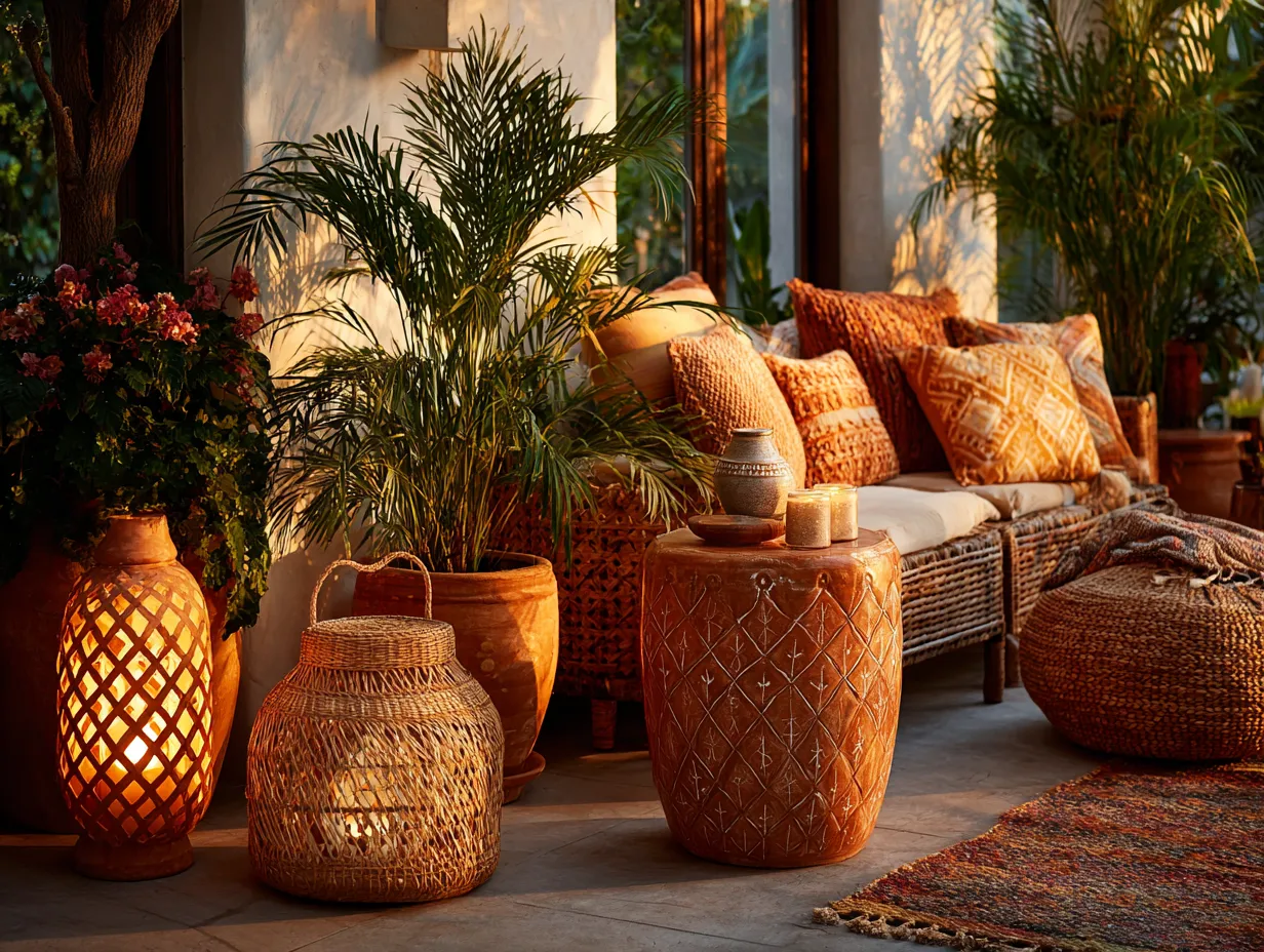 * **Lighting:** Terra cotta lanterns or candle holders for soft evening glow.