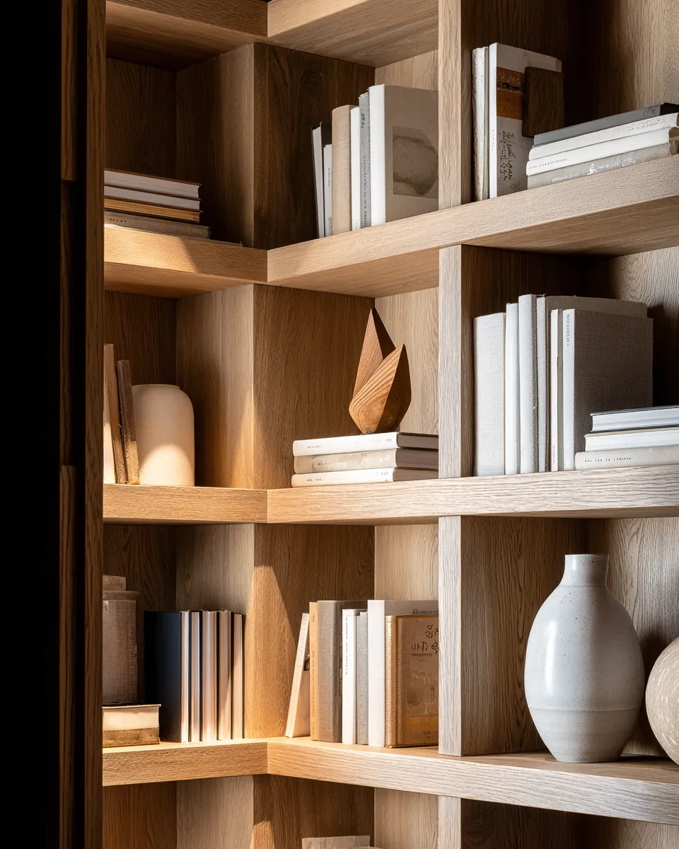 Each item on your shelf should be chosen for its beauty or function. Group items by texture or color. Leave negative space to allow each piece to breathe. Think ceramic art, small sculptures, a single plant, or a stack of minimalist books.