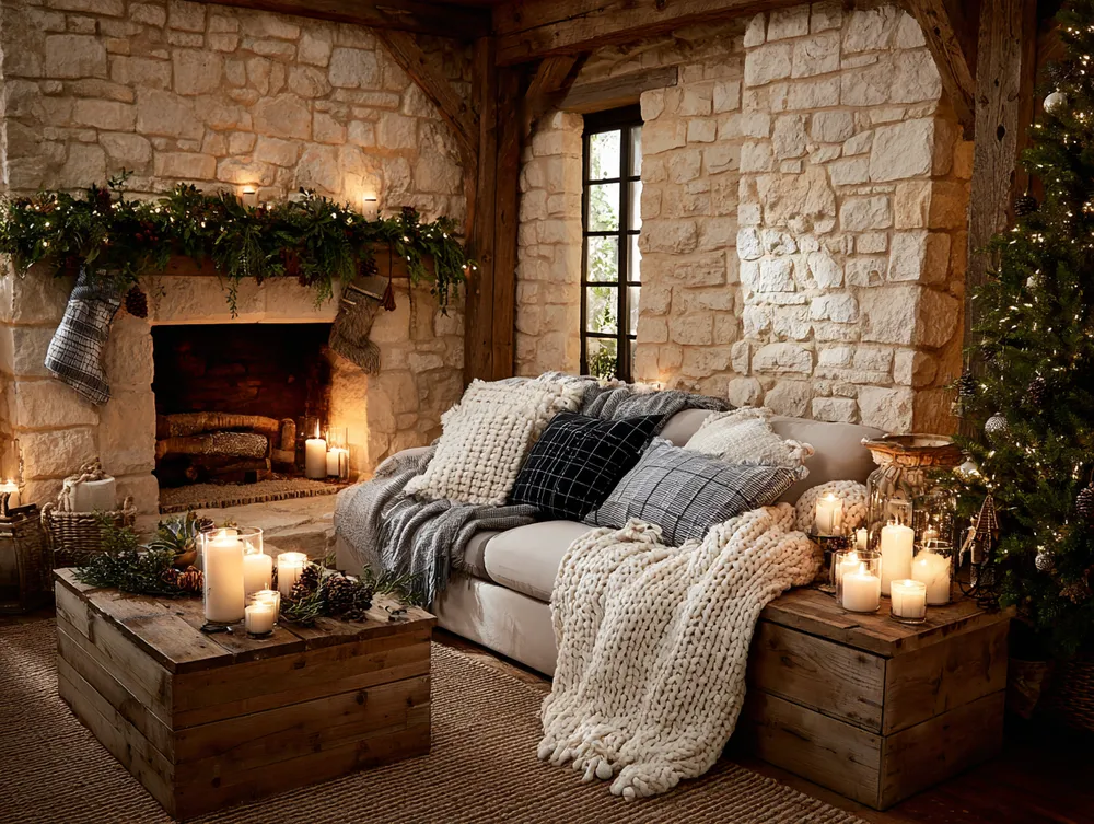 Cozy Christmas Living Room: Country Manor Style! 🌟