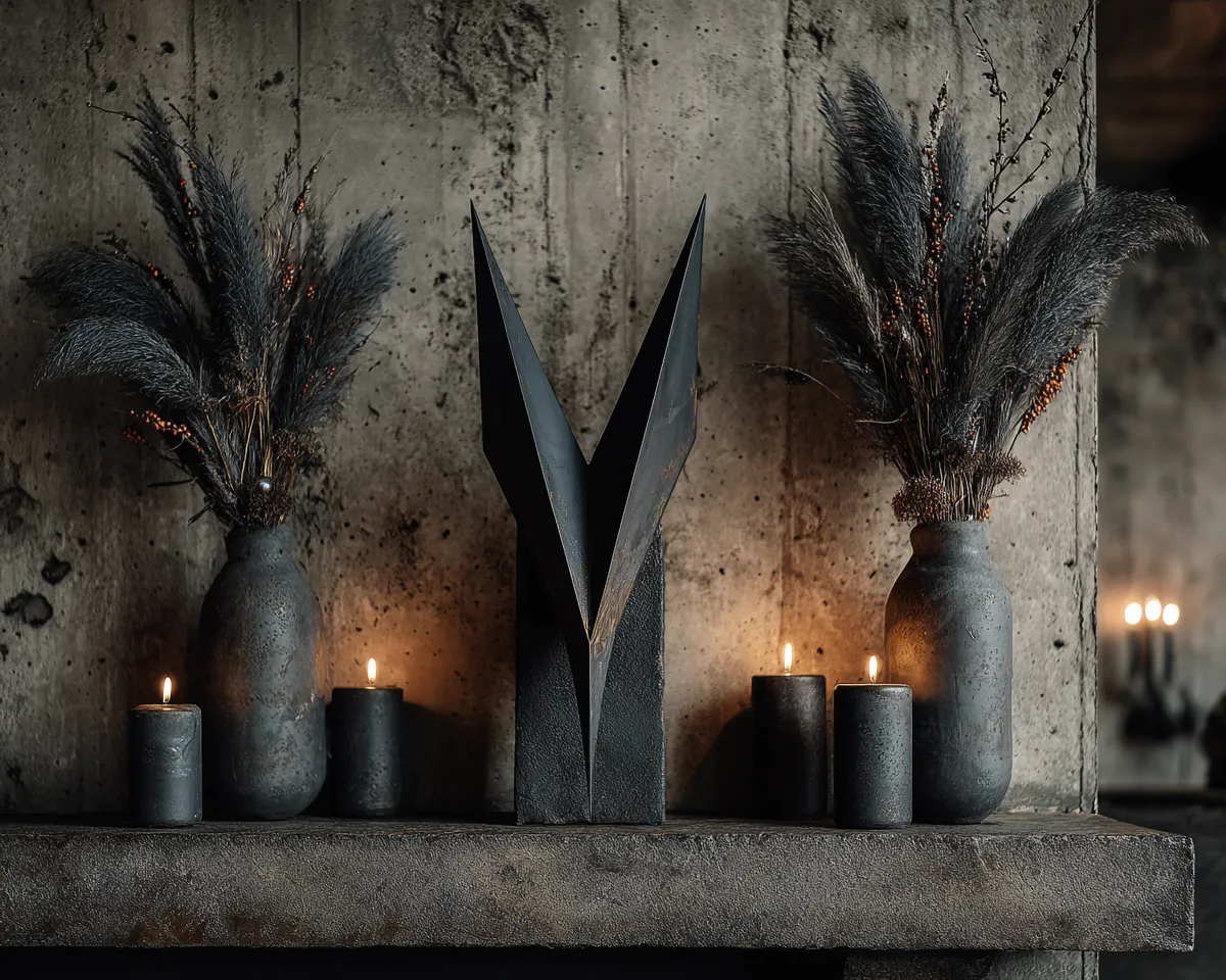 • Juxtapose materials: pair sleek, dark ceramics with rough, textural elements like charcoal-colored felt or distressed metal.