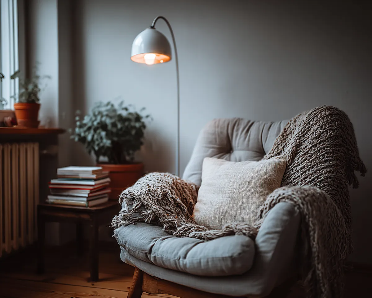 Start with a low-profile armchair in a natural fabric like linen or muted wool. Pair it with a simple, elegant side table, perhaps in a dark wood or a light, matte finish. Natural light is your best friend here – position your nook near a window if possible.
