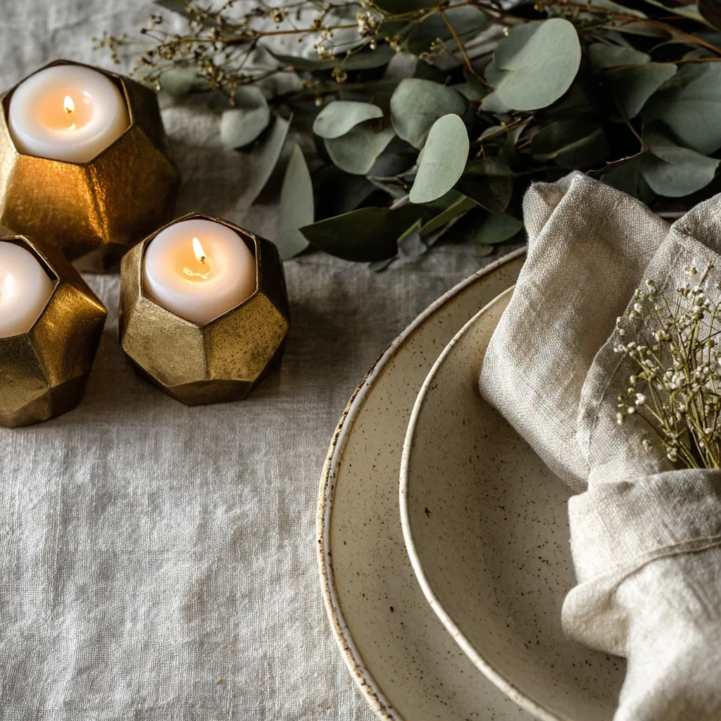 • A few strategically placed, geometric metallic accents (like brushed brass or matte black)