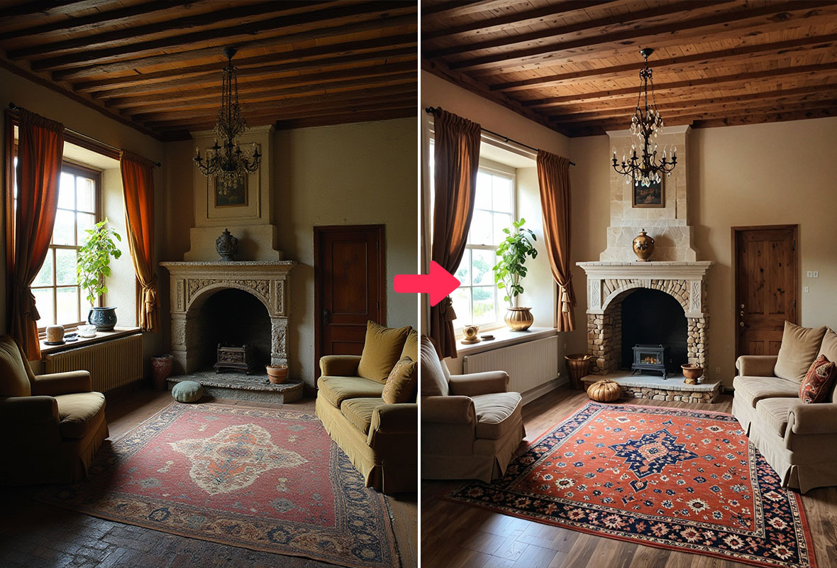 我们先进的人工智能算法能在几秒钟内分析并增强你的照片,智能优化光线、色彩和清晰度,同时保留关键的纹理和材料细节——这是与普通照片编辑器的关键区别。这确保你的图像看起来逼真、吸引人,并且真正代表了房产本身。