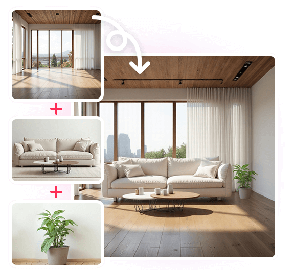 用户上传房间和家具的照片,人工智能算法将家具整合到房间图像中,创建出家具在该空间中外观的逼真可视化效果。