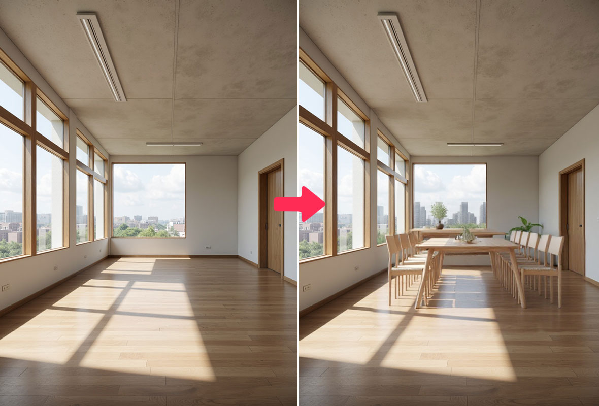 这些图像非常逼真,具有准确的光线、阴影和纹理,几乎与实际布置的效果难以区分。